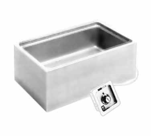 Food Warmer, bottom-mount, built-in, electric, round corner, 12" x 20" pan opening, insulated, with drain, wet/dry operation, thermostatic control, 5-7/8" x 6-1/4" control panel, stainless steel interior, NSF, UL, CSA