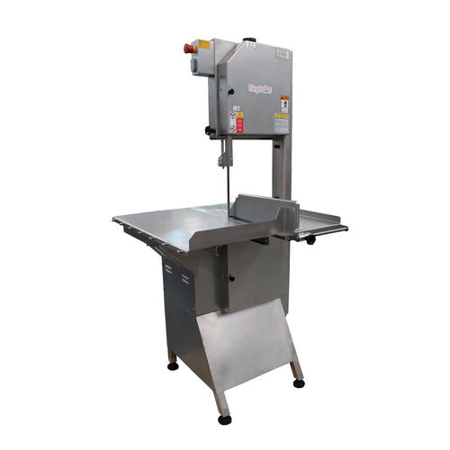 Meat & Bone Saw, heavy duty floor model, 2000 lbs. production/hour, 112" blade, 12-3/4" high x 10" wide cutting clearance, sliding product table, removable doors, sealed bearings & housing, low pressure water jet cleaning, emergency button, heavy duty adjustable legs, stainless steel construction, 1470 watts, 2 HP, 230v/60/3-ph, cETLus, ETL-Sanitation