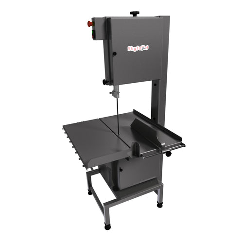 Meat & Bone Saw, heavy duty floor model, 124" blade, 14-1/8" high x 12-3/16" wide cutting clearance, sliding product table, removable doors, sealed bearings & housing, low pressure water jet cleaning, emergency button, heavy duty adjustable legs, stainless steel construction, 3 HP, 230v/60/3-ph, cETLus, ETL-Sanitation