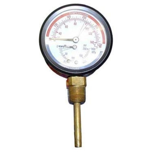 Pressure & Temperature Gauge, 1/2" NPT, 3-1/4" dial, 70 - 210°F, 0 - 200 psi, bottom, replaces Champion: 101144; Hatco: 03.01.003, 03.01.003.00 (CCC item R-136) (ICS item J104) (NET Price)