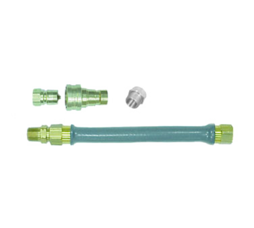 Dormont Safety System™ Combi-Oven Connector, 3/8" inside dia., 48" long, gray PVC coated braided hose, 3/4" hose BIB x 3/8" brass 2-way Quick Disconnect, limited lifetime warranty