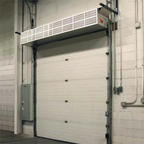 Medium Industrial Air Curtain, covers area up to 108"W, electric heated, (3) 1-speed 1 HP motors, for doors up to 14' high, stainless steel housing, Made in USA