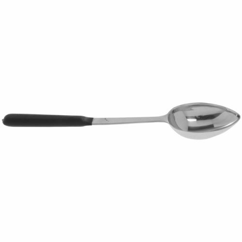 Serving Spoon, 13"L, 3 oz., solid, black silicone handle, 18/8 stainless steel, mirror finish
