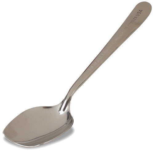 Utility Spoon, 8"L, solid, slanted, stainless steel