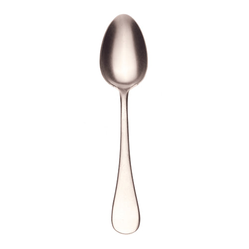Table Spoon/European Dessert Spoon, 7", ergonomic, dishwasher safe, 18/10 stainless steel, PVD titanium coating, vintage finish, Michelangelo Vintage Champagne