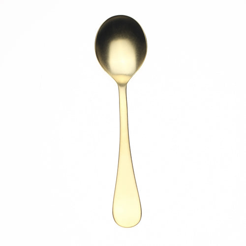 Soup Spoon, 7-1/2", ergonomic, dishwasher safe, 18/10 stainless steel, PVD titanium coating, vintage finish, Michelangelo Vintage Oro