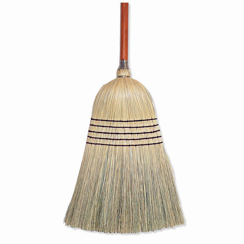 Janitor Broom, #28 fill weight, 5 black stitches, 100% corn bristles, wood handle (priced per case, 6 each per case)