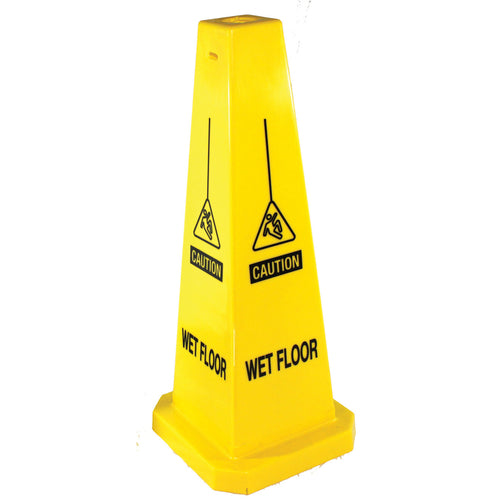 Floor Sign, "Wet Floor", 12"W x 25"H, 4-sided, plastic, yellow, Made in USA (minimum order = case quantity)