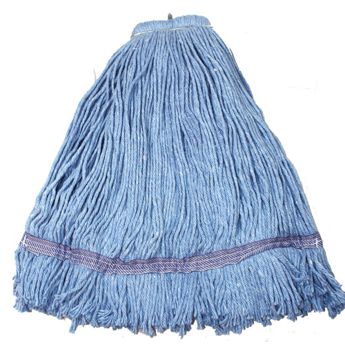 Layflat® Wet Mop Head, 20 oz., regular, screw-type, 1" headband, with no-tangle end band, cut-end, cotton/synthetic blend, blue, Made in USA (minimum order = case quantity)