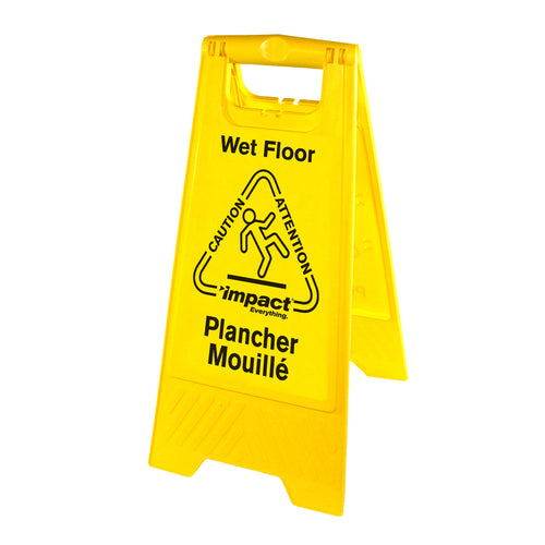Impact® Wet Floor Sign, "Caution Wet Floor", 10-3/4" x 24-5/8" x 1", A-frame, pinch handle, English/Spanish, folds flat, compatible with TriiVu® Chain #9140CY, Made in USA (minimum order = 6 each)