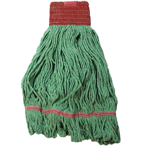 Wet Mop Head, large, saddle-type, 5" vinyl coated mesh headband, looped end, cotton/synthetic blend, green/red, Made in USA (minimum order = case quantity)