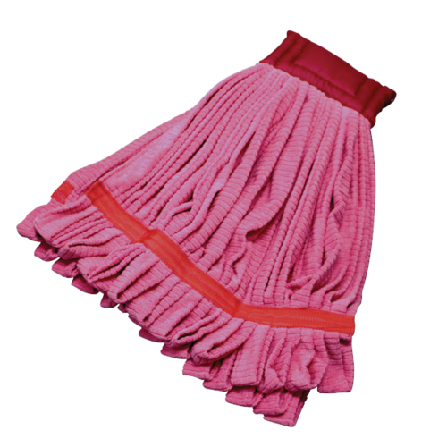 Wet Mop Head, medium (400g), canvas headband and tailband, tube, textured finish, microfiber, red (minimum order = case quantity)