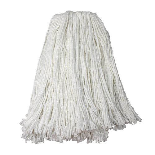 Wet Mop Head, 20 oz., saddle type, narrow headband, cut end, resistant to mildew, rayon, white, made in USA (minimum order = case quantity)