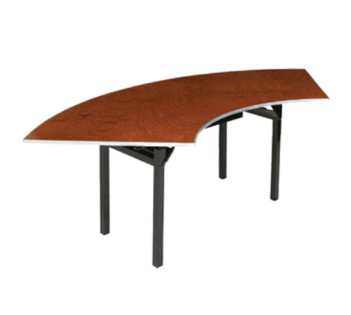 600 Series Folding Table, serpentine, 5'ID/10'OD long x 30" wide x 30"H, laminate surface, 3/4" thick plywood core, black vinyl "T" edge, 19 gauge 1-1/2" square steel tubing folding legs with black epoxy powdercoat finish, button/trigger lock mechanism, non-marking plastic glides