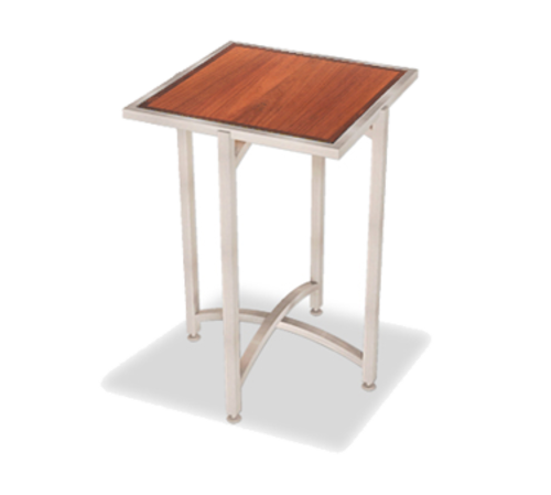 EcoFlex Elite Wood Series Table, square, 24"W x 24"D x 36"H, collapsible, tropical hardwood top, stainless steel tube frame and side mount legs, brushed finish
