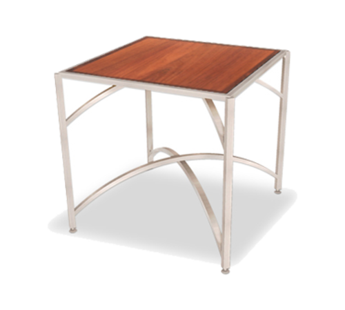 EcoFlex Elite Wood Series Table, square, 36"W x 36"D x 48"H, collapsible, tropical hardwood top, stainless steel square tube frame and corner mount legs, brushed finish, NSF
