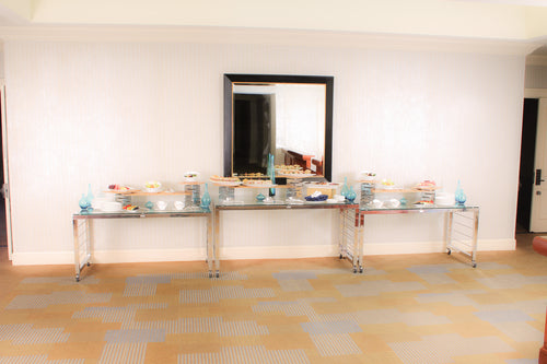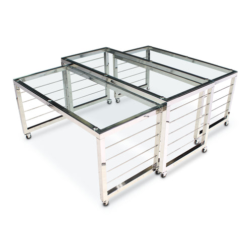 Brooklyn Series Nesting Tables (Essentials), (3) tables: (1) large 72"W x 30"D x 36"H rectangle, (1) medium 66"W x 30"D x 33"H rectangle & (1) small 60"W x 30"D x 30"H table, powder epoxy painted steel tube (2" square) frames with standard laminated tops, 3" swivel casters (2 with brakes)