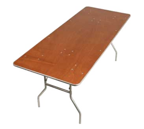200 Series Banquet Folding Table, rectangular, 36" x 72" x 30"H, 5/8" thick plywood top with walnut sealer stain & UV polycoat, aluminum "C" channel edge, radius corners, wishbone style legs, 16 gauge 1" diameter round zinc plated steel tubing, gravity lock, non-marking plastic glides, custom product (minimum order 2 each)