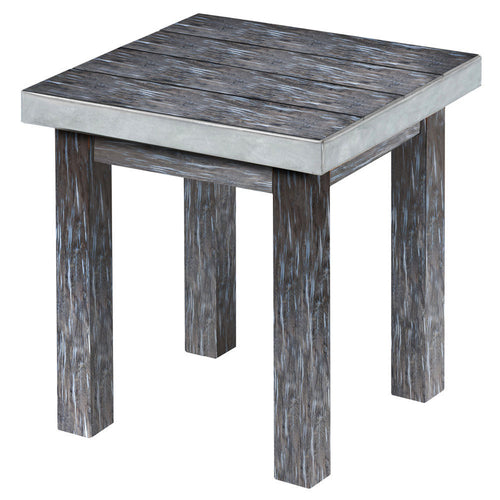 Table, 14-1/2" x 14-1/2" x 19-3/4"H, small, square, nesting, galvanized steel trim, wood frame with pine wood top, rustic grey