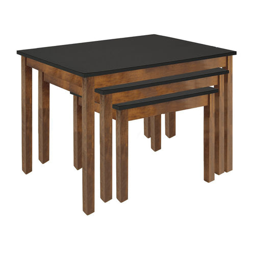 Table Set, 3-piece, includes (1) each: 40" x 30" x 32"H, 32" x 26" x 28"H & 24" x 20" x 24"H, rectangular, nesting, Formica laminate plywood top, poplar wood frame, two tone: oak frame/black top