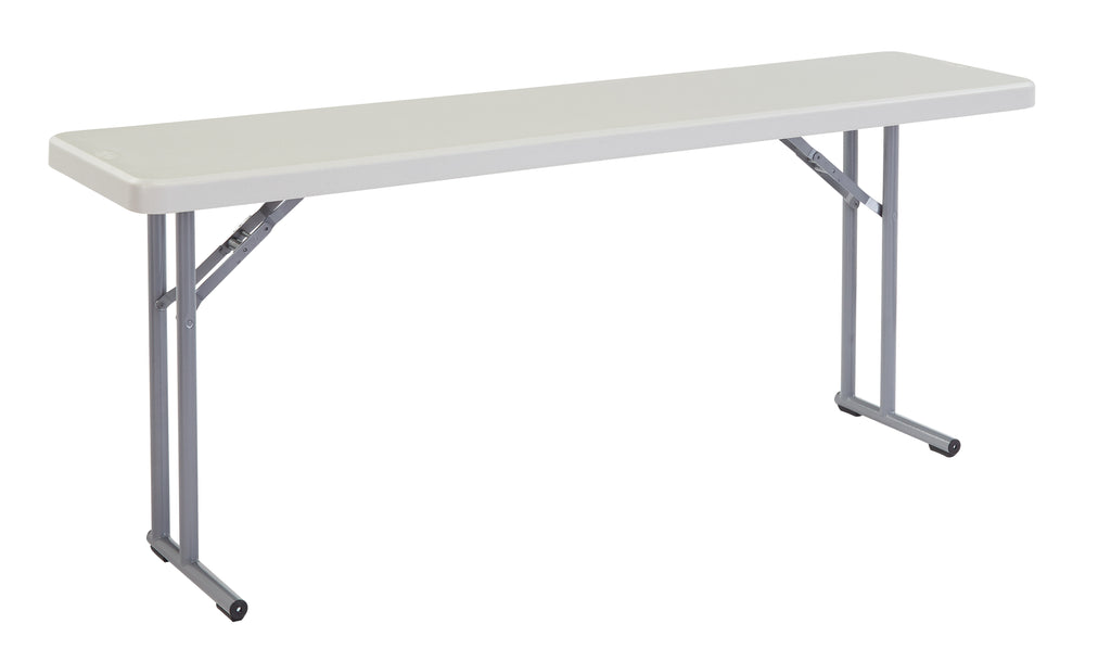 NPS® Heavy Duty Seminar Folding Table, 18" x 72", 2" thick UV protected textured top, 16-gauge cantelevered speckled gray frame, spring loaded lock, ANSI/BIFMA, MAS Green Certified (quick ship)