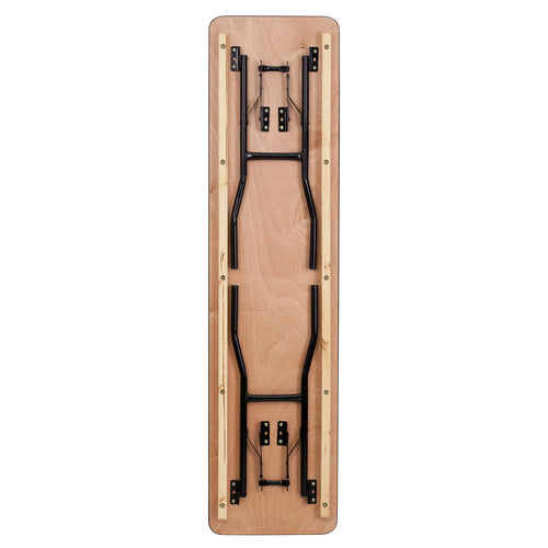 Folding Training/Seminar Table, 72"W x 18"D x 30-1/4"H, seats up to 3 adults, 265 lb. static load capacity, rectangular, 3/4" thick plywood top, clear coat finish, black PVC t-mold edge, 18 gauge steel black powder coated wishbone legs, protective floor caps (in stock items ship within 24 hours)