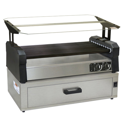 Hot Diggity® Pro X Hot Dog Roller Grill, large, countertop, (10) non-stick coated rollers, separate temperature controls for front & rear heat zones, cabinet switches from flat to slanted, roller grill angle adjustable to 4° or 8°, stainless steel drip tray, 1218 watts, 120v/60/1-ph, NEMA 5-15P, cULus, NSF