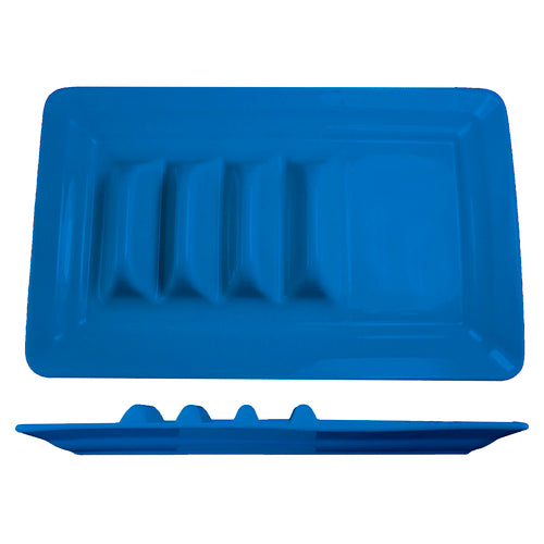 Taco Plate, 14-1/8" x 9-1/8", rectangular, rolled edge, multi-compartments, fully vitrified, oven/microwave/dishwasher safe, lead free, ceramic, light blue (6 each per case)