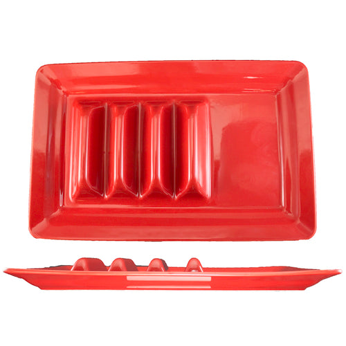 Taco Plate, 14-1/8" x 9-1/8", rectangular, rolled edge, multi-compartments, fully vitrified, oven/microwave/dishwasher safe, lead free, ceramic, crimson red (6 each per case)