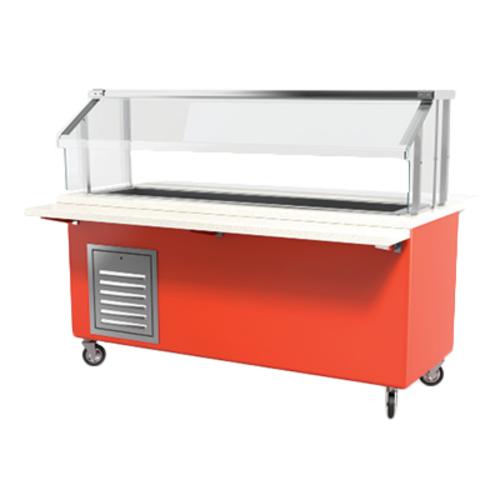 SpecLine Refrigerated Cold Food Counter, 66-3/8"W x 30"D x 36"H, 14ga stainless steel top, (1) 53"W x 21-1/4"D x 9" deep stainless steel cold well, accommodates (4) full size 6" deep food pans, pan drain, rear storage opening, specify base, self-contained refrigeration, 5" casters all with brakes, 1/3 HP, UL, cUL, UL EPH (contact factory for price)