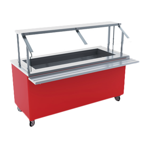 SpecLine Ice Cooled Serving Counter, 96-3/8"W x 30"D x 36"H, accommodates (6) 12" x 20" pans, 14ga stainless steel top with 77"W x 6" deep fully insulated pan, specify base, rear storage opening, 5" casters all with brakes, UL, cUL, UL EPH (contact factory for price)