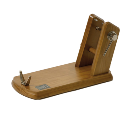 Serrano Ham Holder, 18-7/8"L x 9"W x 5-1/8"H, used for cutting ham with leg & bone, heavy-duty varnished, beechwood and stainless steel
