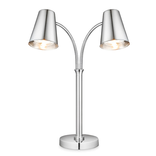 Double Heat Lamp, (2) 250 watt bulbs, 23"H, free-standing, adjustable neck, portable, chrome, 110v/60/1-ph, 4.4 amps