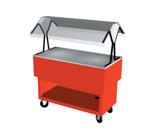 EconoMate™ Solid Top Portable Buffet, 44-3/8"W x 22-1/2"D base, stainless steel top, enclosed steel base with powder coat finish, open at rear with bottom shelf, clear acrylic canopy, 5" casters, NSF