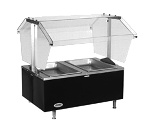 Deluxe Service Mate, Counter Top Buffet Hot Food Unit, electric, 63-1/2" L, (4) 12" x 20"Hot food wells, stainless steel top, steel wrapper/laminated black vinyl finish, clear double sided Tuffak® sneeze guard, adjustable feet, 120v/60/1-ph, 2000w, 16.7 amps, NEMA 5-30P, NSF, cULus