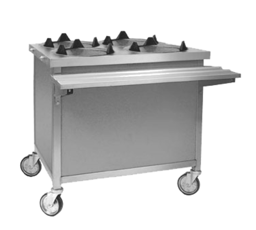 Director's Choice® Dish Dispenser, mobile, 30"W x 18"D x 34"H, 16/304 stainless steel top, (2) heated tubes accommodates 9-1/8" dia. plates, 5' cord & plug included with each heated tube, 80°-160°F temperature range, welded 1-1/2" square tubular base, holly berry red (Wilsonart D307-60) laminate panel on all four sides, 5" poly tread casters (2 with brakes), includes quick-release docking device for linking multiple units, 760W, UL, NSF