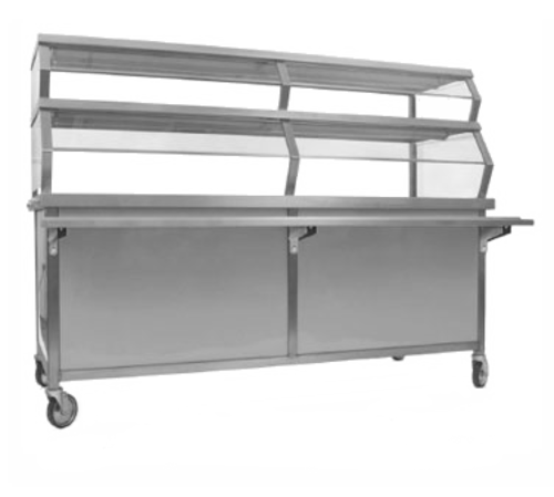 Director's Choice® Solid Top Serving Unit with Refrigerated Base, 78"W x 30"D x 34"H, 16/304 stainless steel top, self contained condenser unit with thermostatic controls, 1-1/2" square tubular base, (2) doors operator side, laminated front panel holly berry red (Wilsonart D307-60) on 18 gauge galvanized subpanel, 5" poly tread casters (2 with brake), 120v/60/1-ph, 6.8 amps, 1/4 hp, NEMA 5-15P, 6' cord & plug, UL, NSF