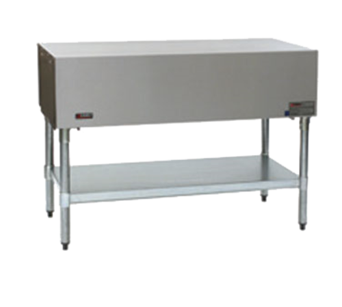 Serving Counter, utility, 63-1/2"W x 22-1/2"D x 35-1/2"H, open base, 16/430 stainless steel flat top, 22/430 stainless steel body, galvanized undershelf, galvanized legs with adjustable non-marking bullet feet, NSF