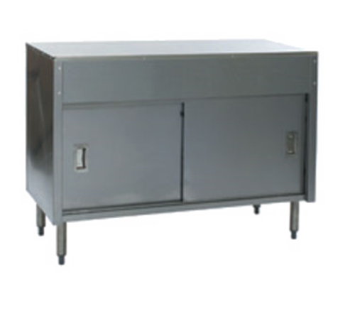 Spec-Master® Solid Top Unit, 48"W, 16 gauge stainless steel top, 20/430 stainless steel enclosed base with sliding doors, stainless steel legs with adjustable plastic bullet feet, NSF