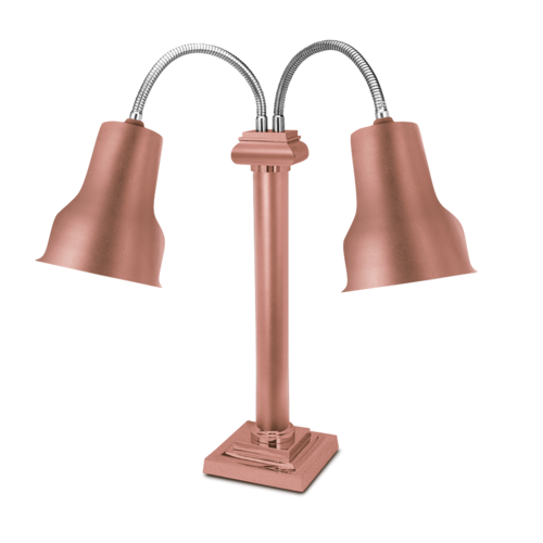 Lamp Warmer, double, self standing, (2) 250W type bulb (included), flexible lamp head, sphere shade, round base with square bottom, single on/off switch, for carving station, stainless steel, XYLO copper finish with Anti-Microbial 24/7 germ-free surface coating, 120v/60/1-ph, 4.2 amps, NEMA 5-15P, 5 Star Series (made to order, non-returnable)