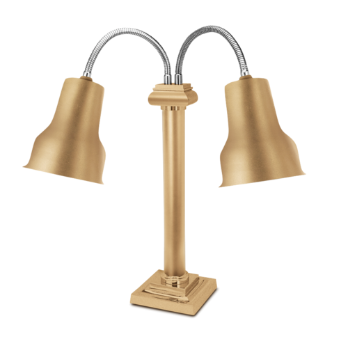 Lamp Warmer, double, self standing, (2) 250W type bulb (included), flexible lamp head, sphere shade, round base with square bottom, single on/off switch, for carving station, stainless steel, XYLO bronze finish with Anti-Microbial 24/7 germ-free surface coating, 120v/60/1-ph, 4.2 amps, NEMA 5-15P, 5 Star Series (made to order, non-returnable)