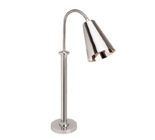 Lamp Warmer, single, self standing, 250W type bulb (included), flexible lamp head, conical shade, round base, single on/off switch, for carving station, stainless steel, brushed finish, 120v/60/1-ph, 2.1 amps, cord, NEMA 5-15P, 5 Star Series (made to order, non-returnable)