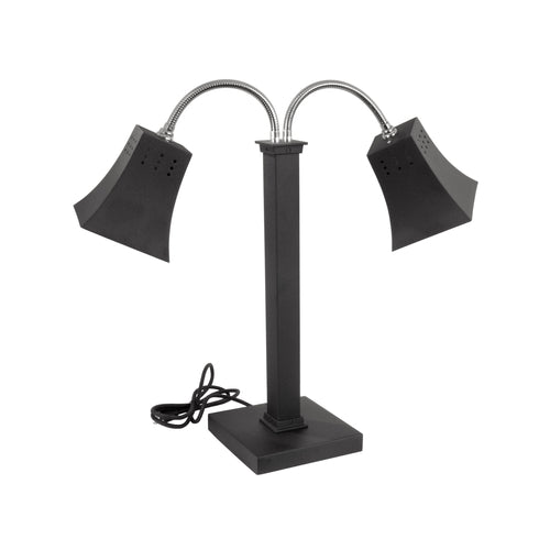 Lamp Warmer, double, self standing, (2) 250W type bulb (included), flexible lamp head, square shade, square base, single on/off switch, for carving station, stainless steel, XYLO black finish with Anti-Microbial 24/7 germ-free surface coating, 120v/60/1-ph, 4.2 amps, NEMA 5-15P, 5 Star Series (made to order, non-returnable)