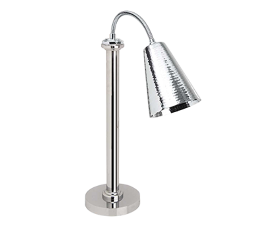 Lamp Warmer, single, self standing, (1) 250 watt type bulb, flexible lamp head, hammered conical shade, round base, single on/off switch, for carving station, stainless steel, 120v/60/1-ph, 2.1 amps, cord, NEMA 5-15P, 5 Star Series