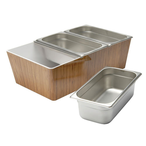 Buffet Server/Housing, 20-3/4" x 12-1/2" x 6-1/2"H, rectangular, holds 1/3, 1/2 or full-size pans, with (2) adapter bars, melamine with bamboo finish