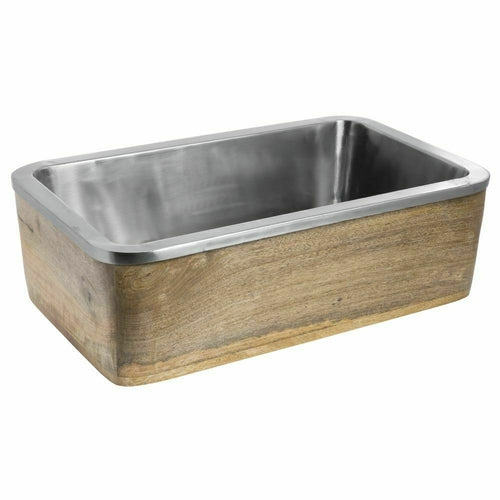 Housing, full-size, 22-1/2"L x 13-3/4"W x 7-1/4"H, rectangular with rounded corners, with stainless steel insert, food-safe coating, mango wood