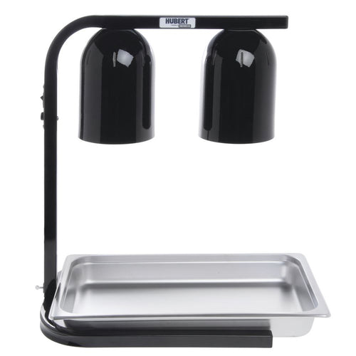 Heat Lamp, 2-bulb, 19-1/2" x 14" x 24"H overall, (2) clear 250 watt infrared bulbs, 6" adjustable height, with 2-1/2" deep full-size pan, 5'L power cord, scratch-resistant powder-coated steel frame, aluminum hood, black, 120/60/1-ph, 15 amp, 500 watt, NSF, UL, cUL, (1 year parts & labor warranty)