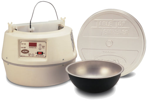 ACM Chocolate Temperer, counter top, 14-1/4"W x 12-1/2"H, thermostat controlled, 6lbs capacity, counter top, cooling fan, (1) removable 5qt. bowl, (1) plastic scraper, stainless steel, 110v/60/1-ph