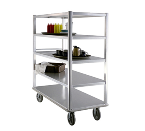 Queen Mary Banquet Cart, with push handle, (5) solid shelves, 62"W x 29"D x 66-3/4"H, 12" spacing, welded aluminum construction, full perimeter bumper, 8" x 2" heavy duty platform casters (2) swivel (2) rigid, 3000 lbs. capacity, NSF, Made in USA