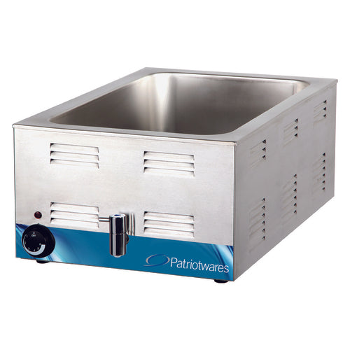 Food Warmer, electric, countertop, 20 quart capacity, holds (1) full-size pan, wet & dry operation, insulated, thermostatic controls, heat indicator lamp, built-in drain, stainless steel interior & exterior, rubber feet, 1200 watts, 120v/60/1-ph, 10.0 amps, cord, cETLus, ETL-Sanitation